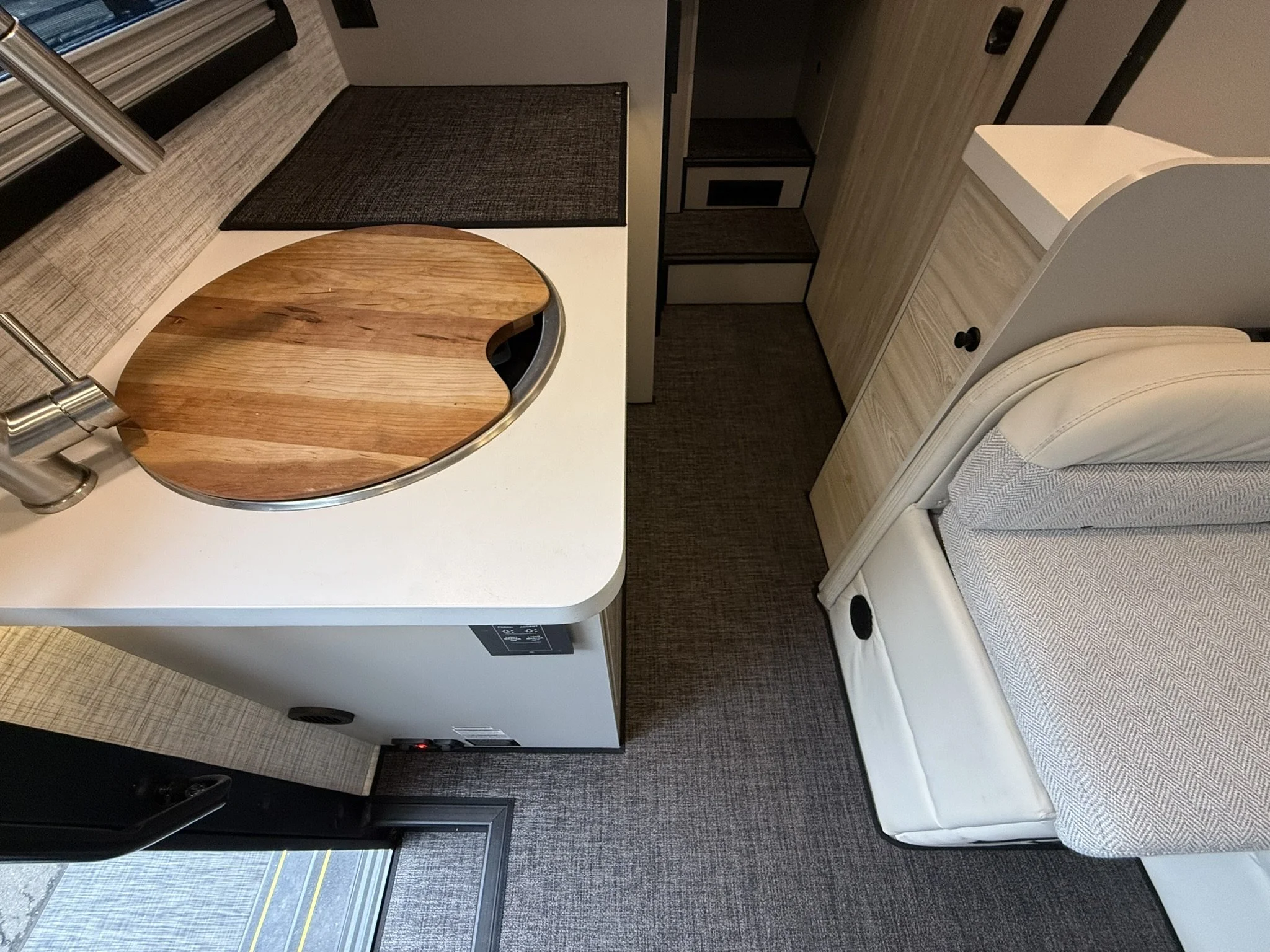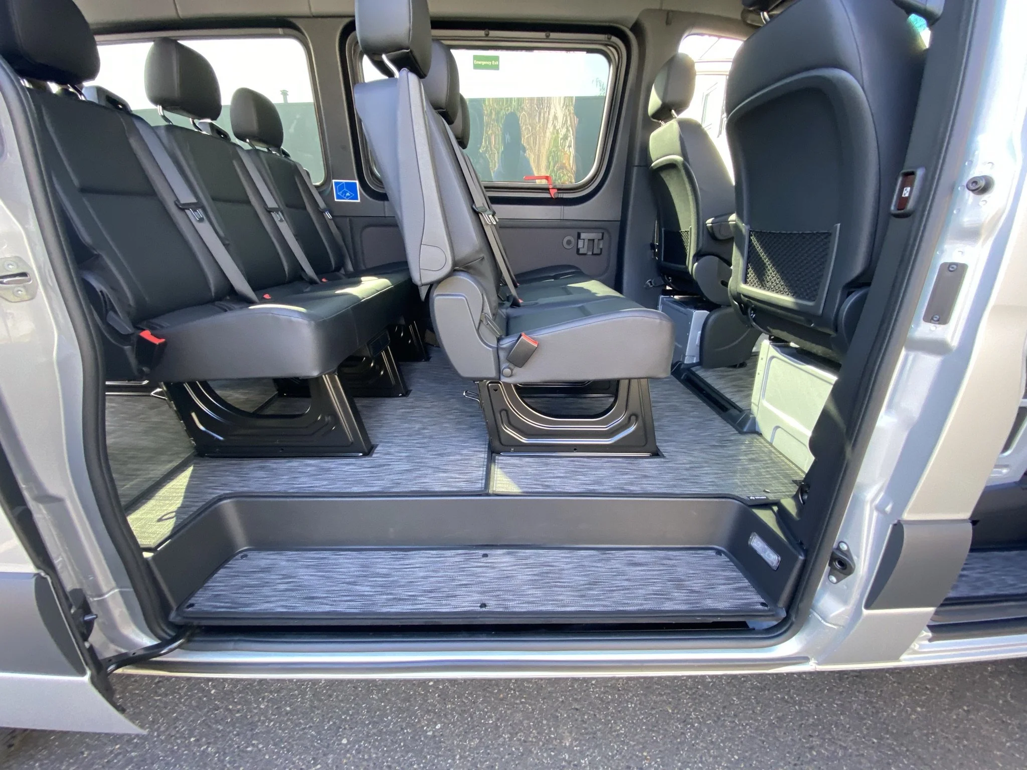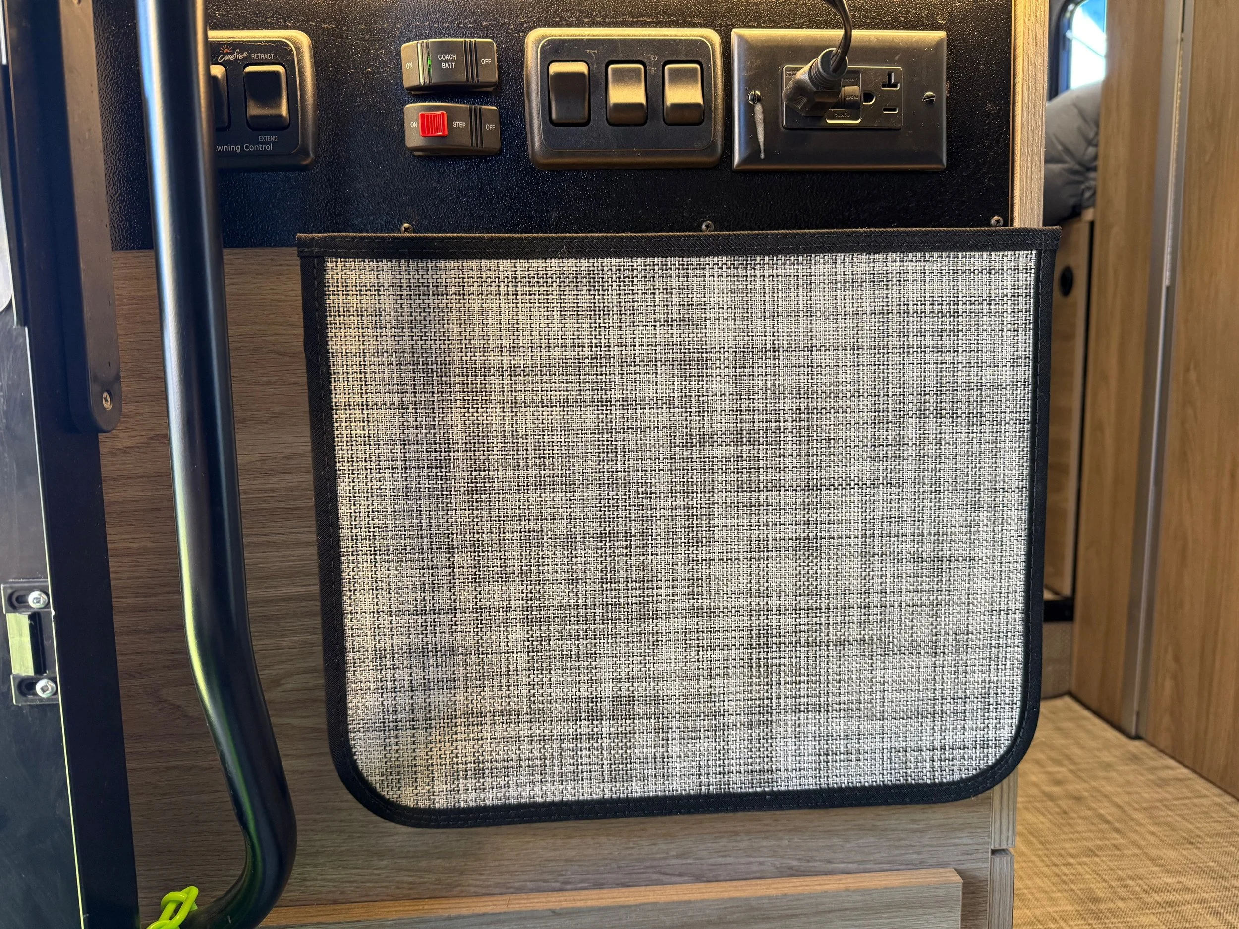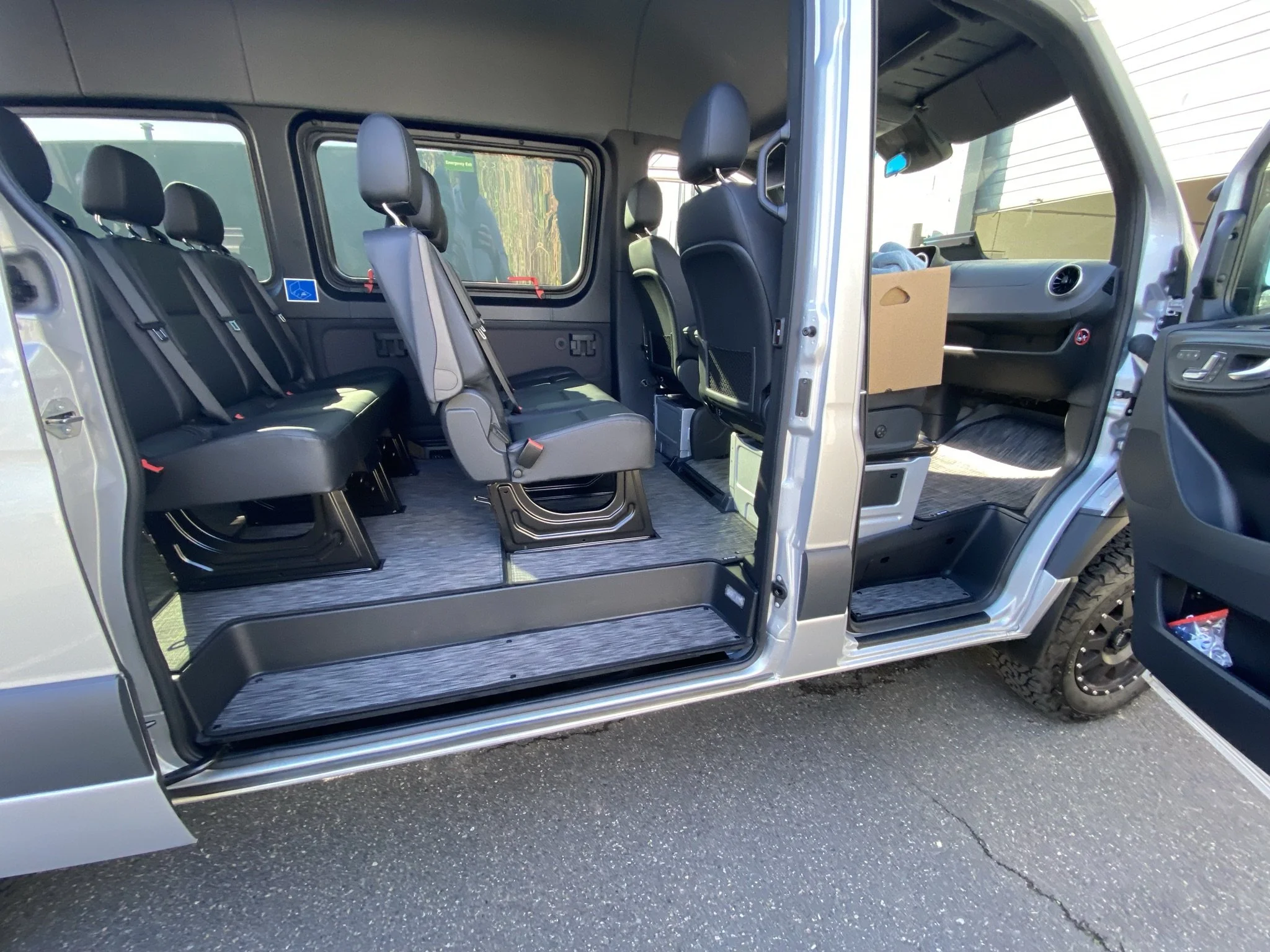 To clean, wipe with a damp cloth or remove them and rinse off using just water (no chemical cleaners are needed!). You can even pressure wash them per our instructions. Our personal favorite is opening up all the doors in the van and blowing the floors out with our battery-powered leaf blowers.